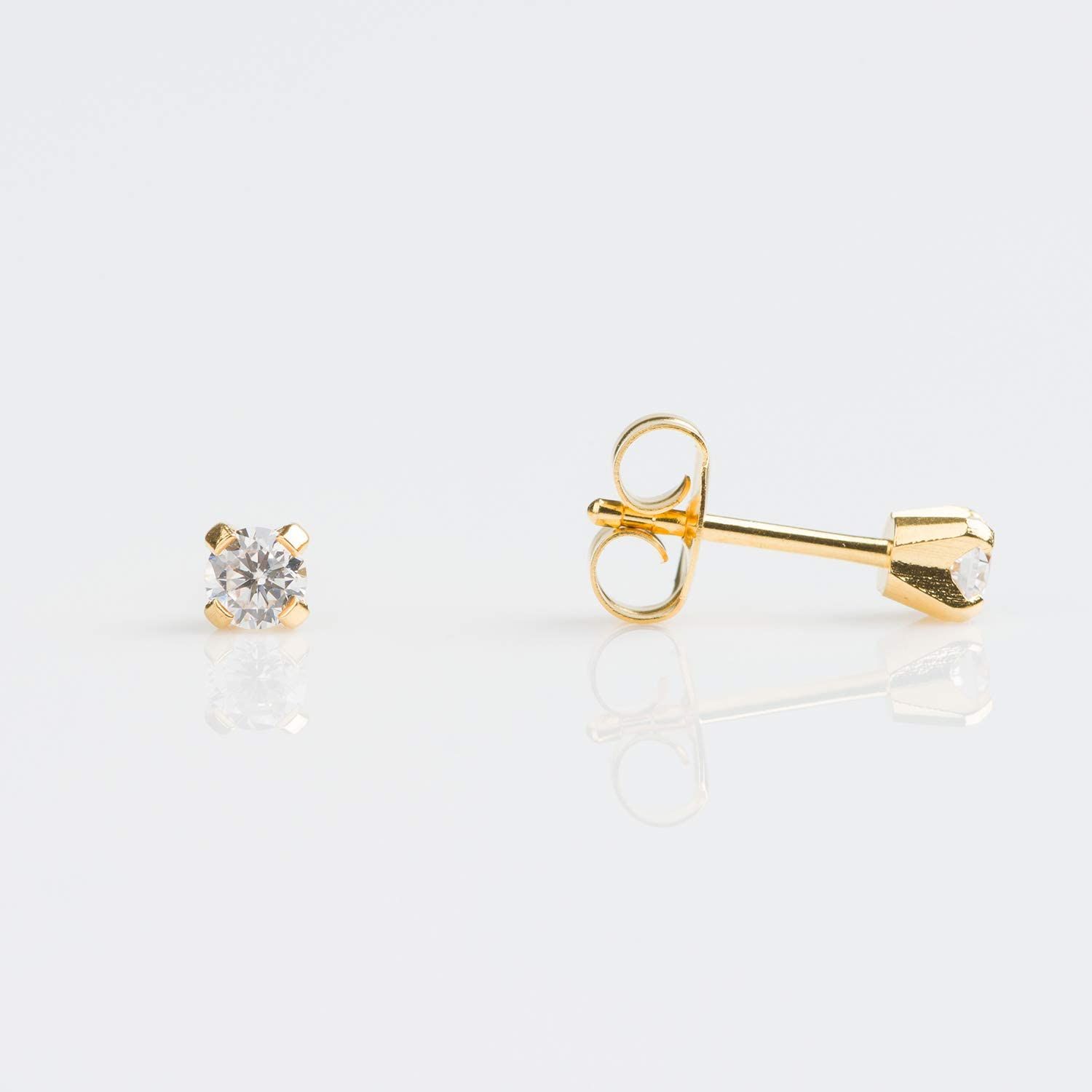 3mmV Longpost - Khuyên tai tráng vàng Studex gắn đá 3mm dành cho tai dày